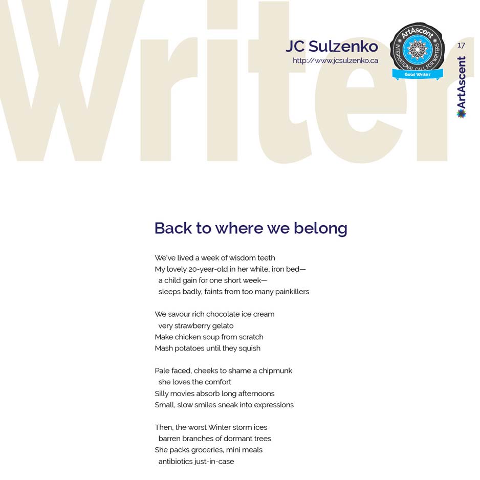 JC Sulzenko is the Gold Writer of the ArtAscent Children call for writers. To see the full body of work and profile, get a copy of the 2026 ArtAscent Art & Literature Journal Children issue.